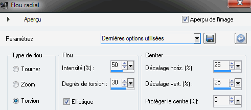 10 - Sur le calque du dessous, Réglage, Flou, Flou radial :