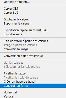 4 - Clic droit sur le calque de texte, Convertir en forme :
