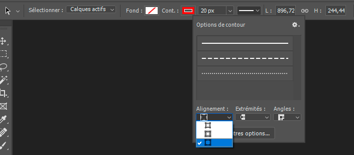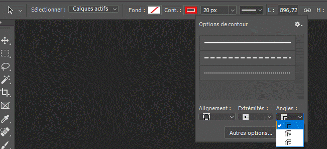 6 - Dans la Barre d'options, définissez un fond nul et un contour couleur de 20 pixels.