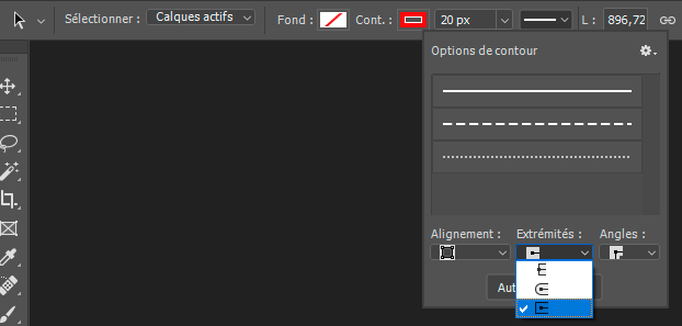 Cliquez sur la flèche à droite du trait pour ouvrir le menu déroulant des options.