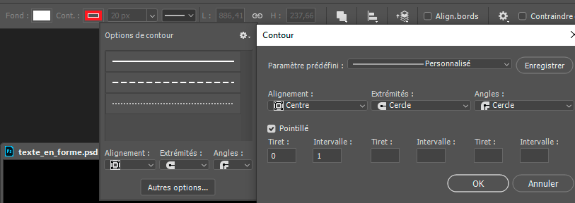 8 - Il vous reste à essayer d'autres options de trait de contour :