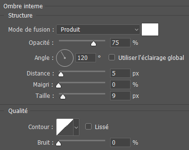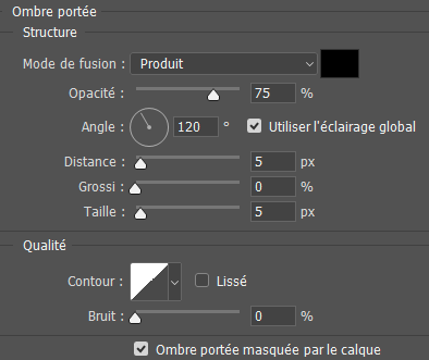 3 - Au bas de la Palette Calques, cliquez sur Ajouter un style de calque puis, Ombre portée :