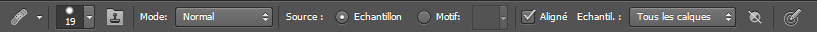 Assurez-vous que dans la barre d'options, la case Échantillonner les calques est cochée, de même que Aligné.