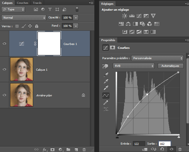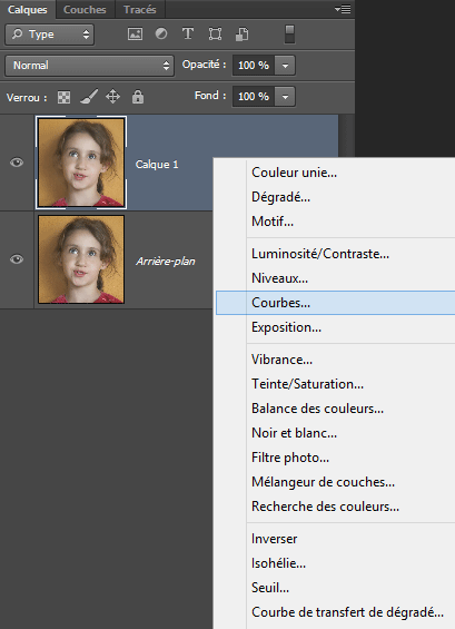 4 - Au bas de la Palette calques, cliquez sur Créer un calque de réglage, Courbes :