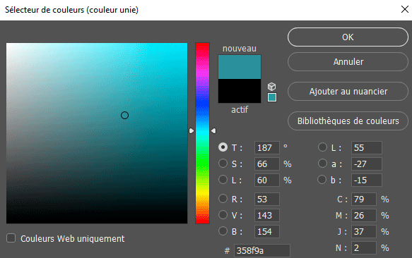 Au bas de la Palette calques, cliquez sur Créer un calque de réglage, Couleur unie.