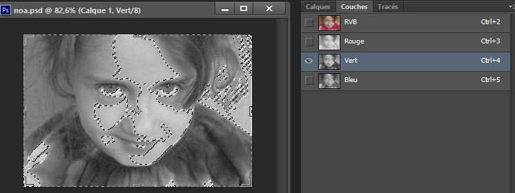 Sélectionnez la couche couleur présentant le plus de contraste.