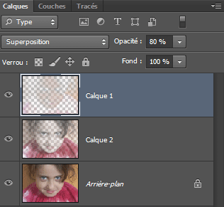 Ici 80% sur le calque 1 et 60% sur le calque 2.