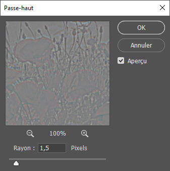 3 - Réglez le curseur de la boîte de dialogue Passe-haut sur 1,5 et cliquez sur OK :