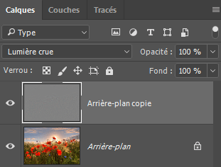4 - Dans la liste des modes de fusion de la palette Calques, sélectionnez Lumière tamisée ou Lumière crue selon ce qui convient le mieux :