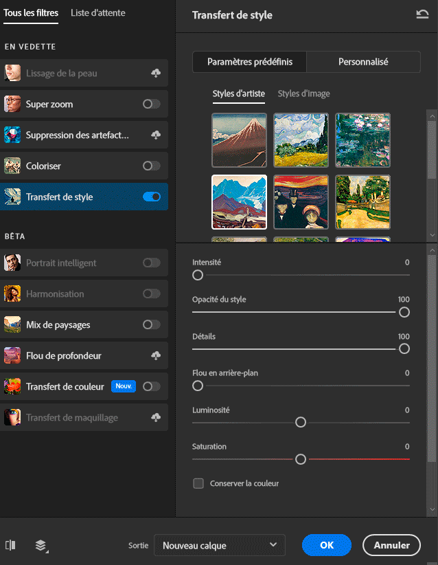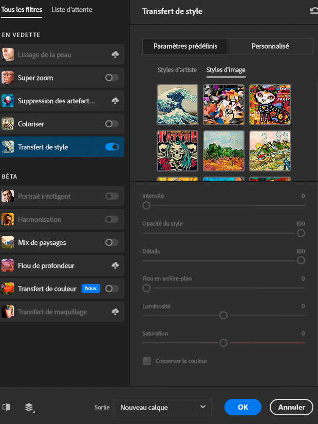 D'autres effets sont disponibles dans l'onglet Styles d'images :