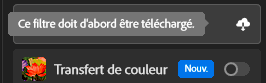 Si un petit nuage se trouve à droite du filtre c'est qu'il n'est pas chargé :