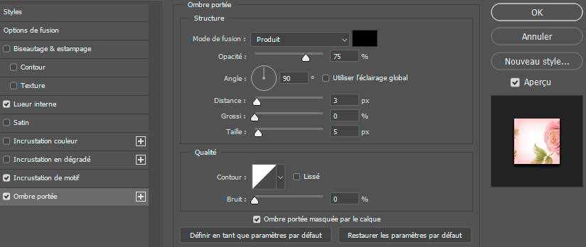 7 - Au bas de la Palette calques, cliquez sur Ajouter un style de calque :