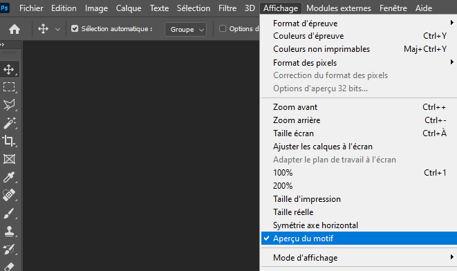 3 - Agrandissez la zone de travail jusqu'à apercevoir le carré noir qui représentera le motif :