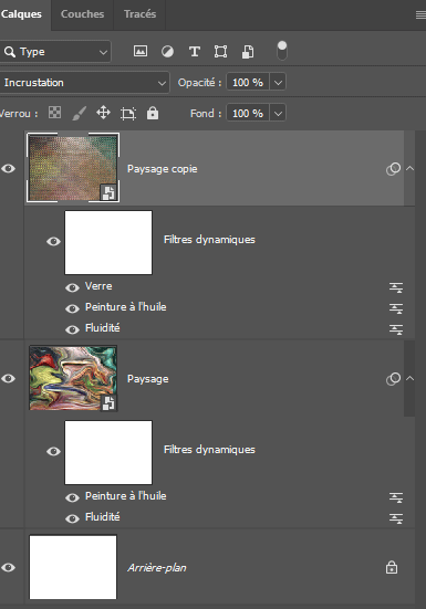 6 - Dans la Palette calques, choisissez le mode de fusion Lumière tamisée ou Incrustation :
