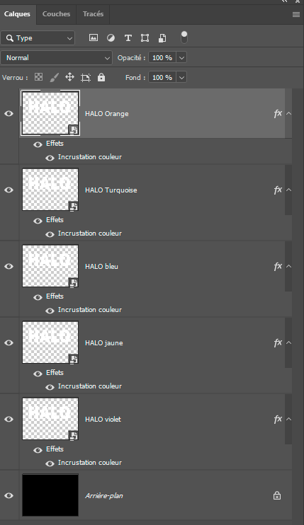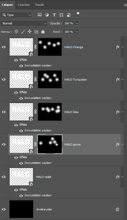 7 - Répétez cette étape sur les 3 calques du dessous.