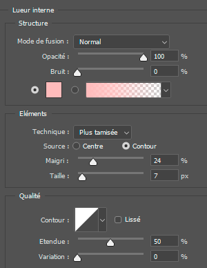 5 - Cliquez sur Lueur interne avec la même couleur de votre fond :