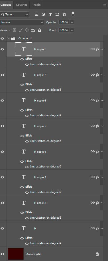 6 - Pour dupliquer ce calque avec sa transformation, utilisez le dégradé MAJ + CTRL + ALT + T.