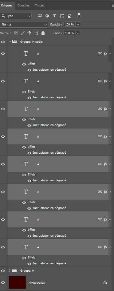 Répétez ces opérations pour une nouvelle lettre en modifiant la couleur du dégradé :