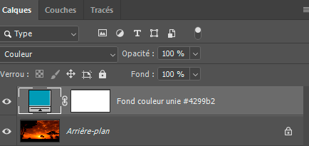 3 - Cliquez sur la vignette du masque de fusion du fond couleur.