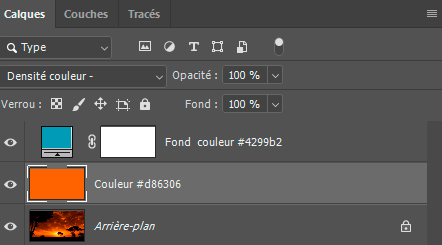 Édition, Remplir, Couleur #d86306, mode de fusion Densité couleur - :