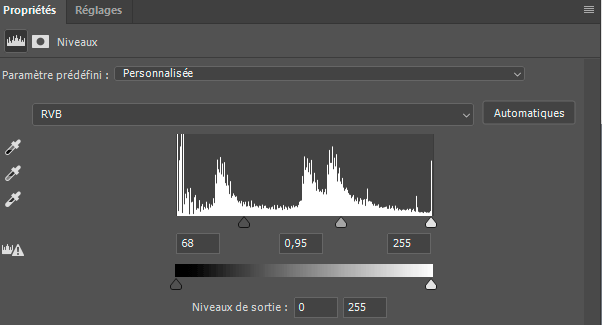 4 - Au Bas de la Palette calques, cliquez sur Créer un calque de remplissage ou de réglage, Niveaux.