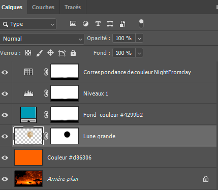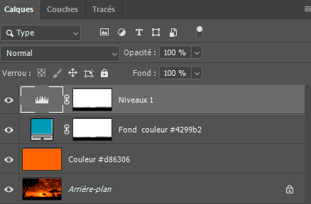 En tenant la touche ALT enfoncée, faites glisser le masque d fusion sur le Niveaux.