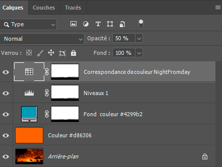 6 - Au Bas de la Palette calques, cliquez sur Créer un calque de remplissage ou de réglage, Correspondance de la couleur.