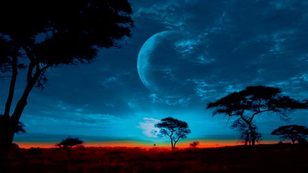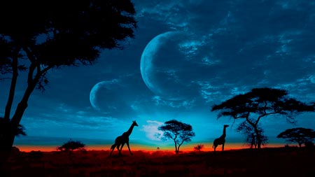 | Cliquez sur l'image du paysage et de la lune pour l'obtenir en taille réelle. Installez les formes animaux dans les formes personnalisées. | ||