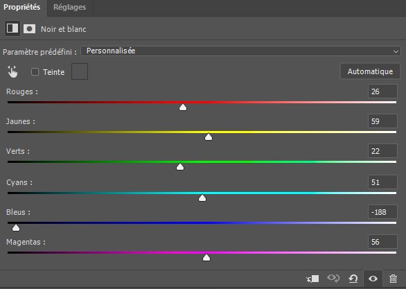 Ces paramètres seront à ajuster en fonction du choix de votre image. Vous devez obtenir un beau noir et blanc.