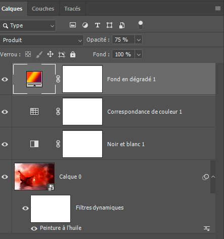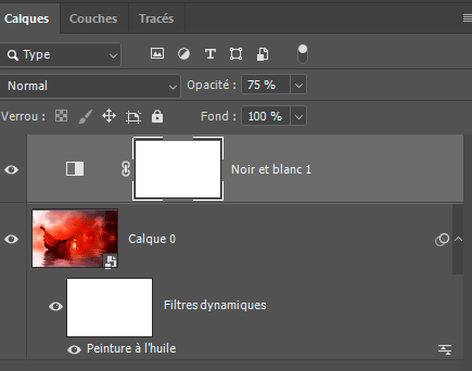 Mais vous pouvez régler l'opacité de ce calque de réglage comme c'est le cas ici à 75% :