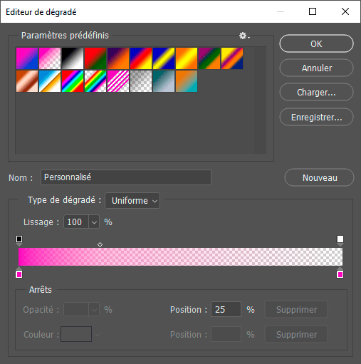 Cliquez sur la vignette du dégradé pour ouvrir l'éditeur de dégradé.