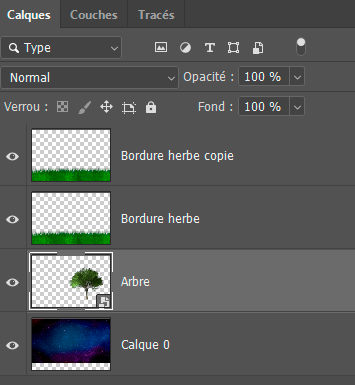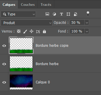 3 - Copiez puis collez l’image Bordure herbe et placez-la tout en bas à l'aide de l'outil Déplacement (V) :