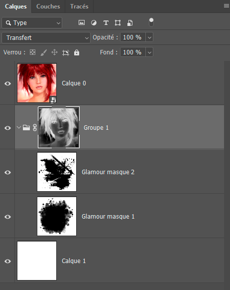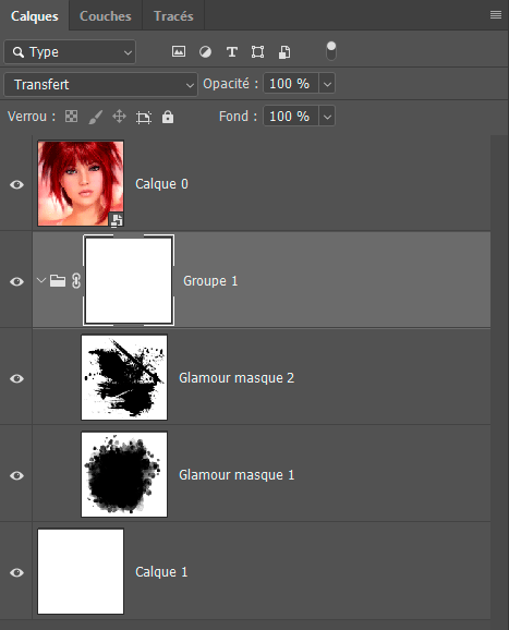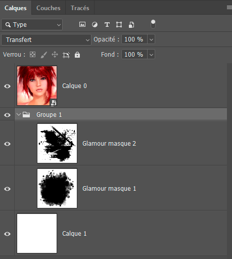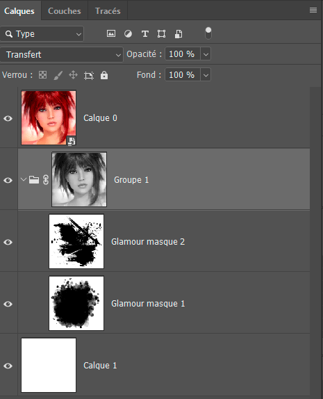 Sélectionnez le masque de fusion blanc Groupe 1 en tenant la touche ALT enfoncée.