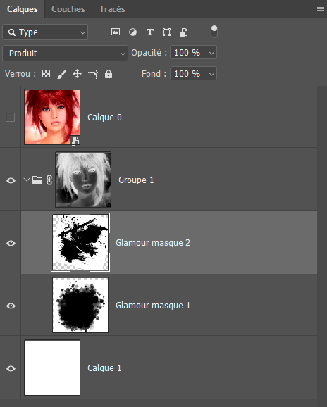 13 - Attribuez le mode de fusion Produit pour chacun des masques.