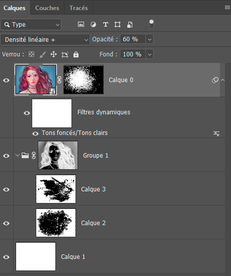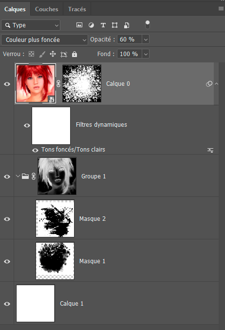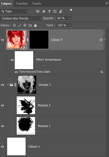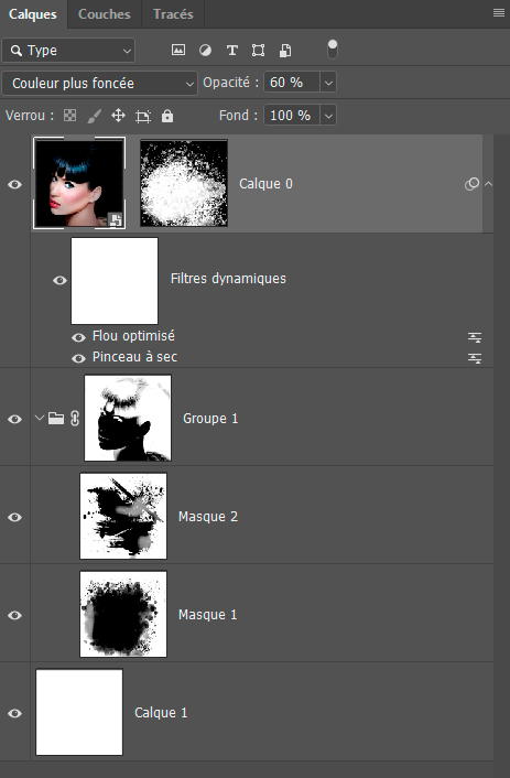 16 - Choisissez le mode de fusion Couleur plus foncée, Opacité 60%.