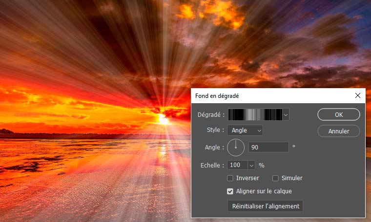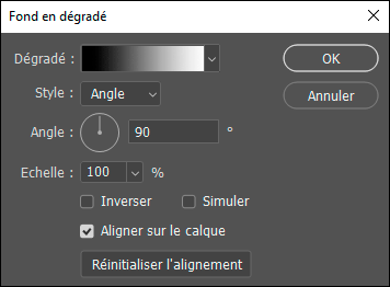 puis Dégradé, Noir et blanc, Style Angle, 90° :