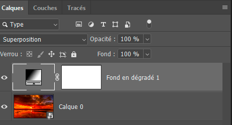 7 - Rouvrez le fond en dégradé en double-cliquant sur la vignette du fond dégradé.