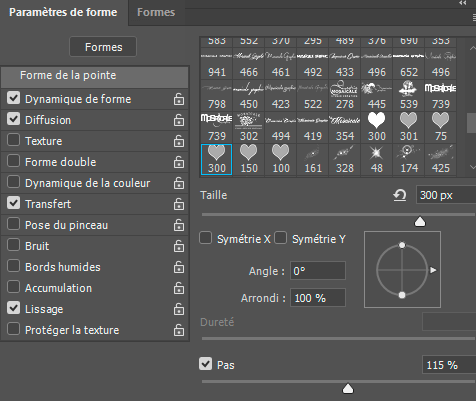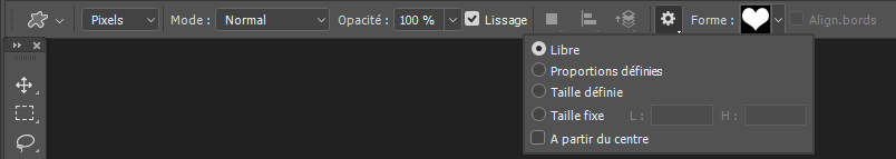 Dans la barre d'options, cliquez sur Pixels et choisissez la forme Carte de cœur :