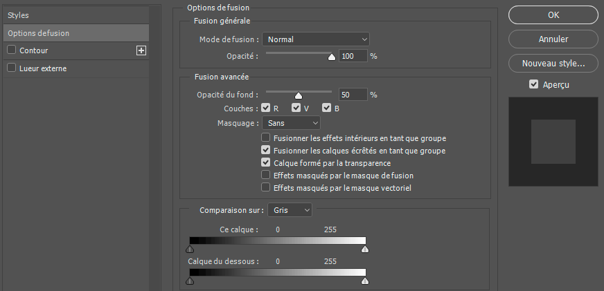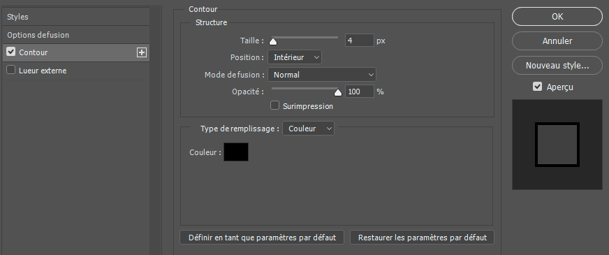 4 - Au bas de la Palette calques, cliquez sur Ajouter un style de calque :