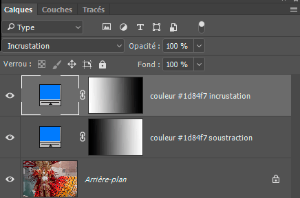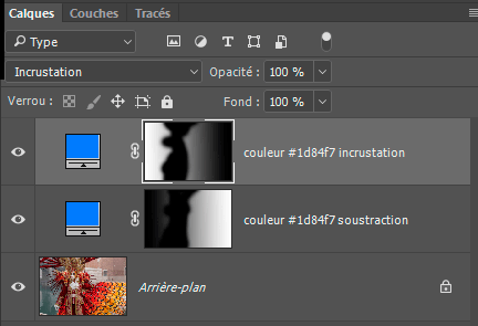 et sur le deuxième calque de droite à gauche en mode Incrustation :