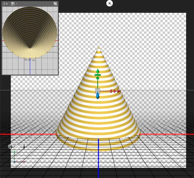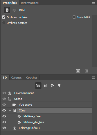 4 - Dans la fenêtre 3D, cliquez sur Cône, dans la fenêtre Propriétés décochez Ombres portées :