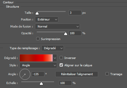 Type de remplissage, le même dégradé, angle - 135°.