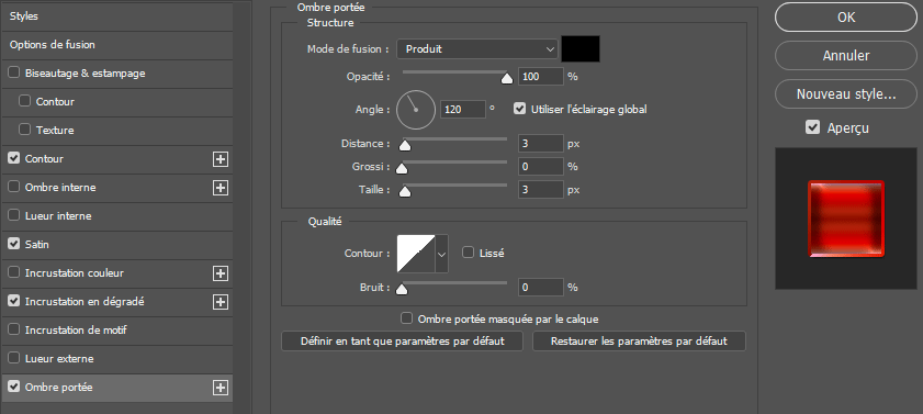 5 - Cliquez enfin sur Ombre portée. Entrez ces valeurs :