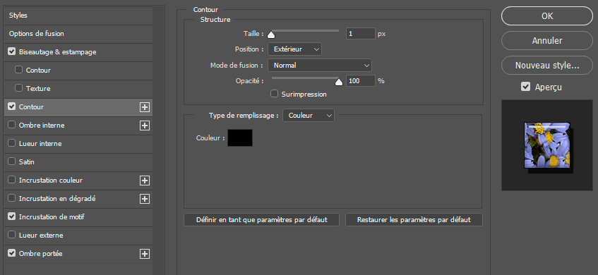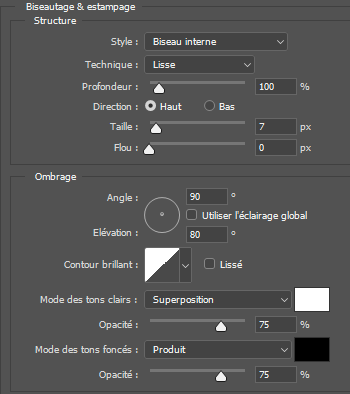 3 - Ne refermez pas la boîte de dialogue, à gauche cliquez sur Biseautage et Estampage :
