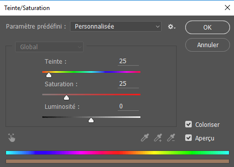 Choisissez une valeur de 25 pour la teinte et de 25 pour la saturation :