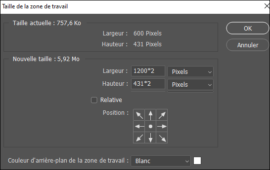 Mon image a une taille de 600 x 431 pixels et nous voulons l'agrandir 2 fois.