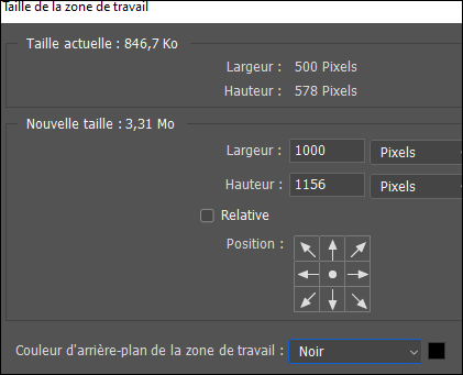 Multipliez la zone de travail par 2 comme ci-dessus (ou moins selon votre choix) fond noir :