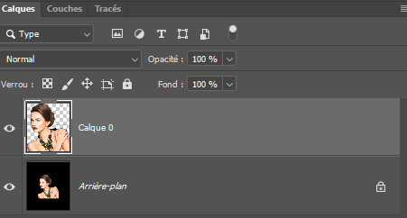 6 - Si vous supprimez le calque arrière-plan l'image est détourée mais des résidus de couleur subsistent :