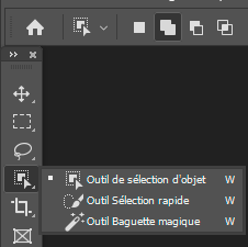 2 - Sélectionnez l'outil Sélection d'objet. Celui se trouve sous celui de la Baguette magique :