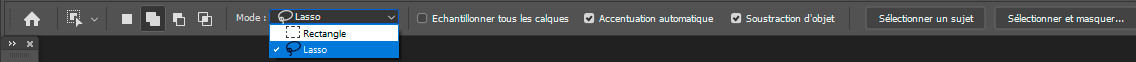 3 - Dans la Barre d'options , choisissez le mode Lasso :